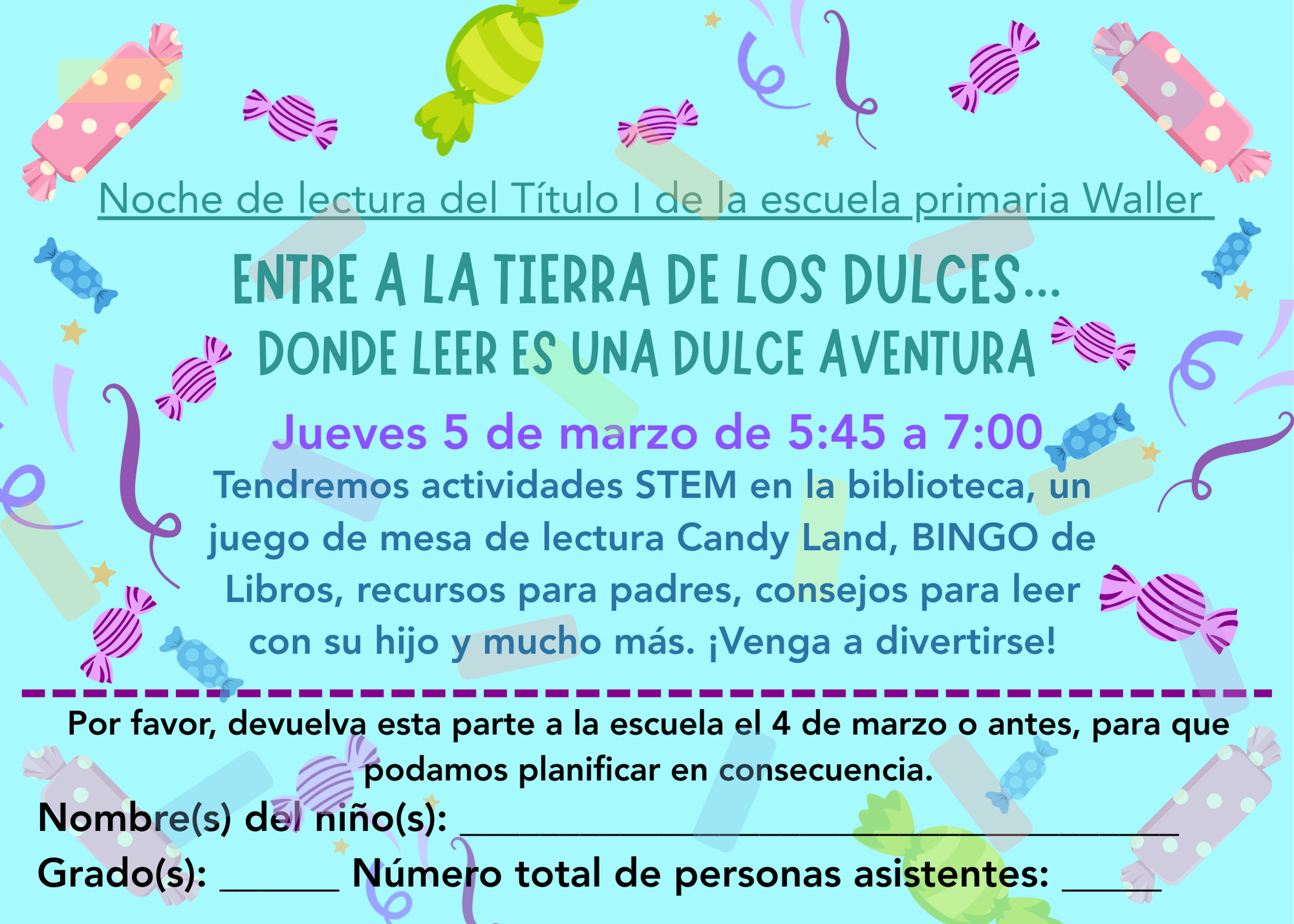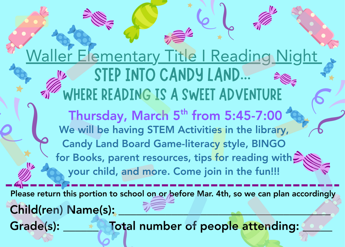 You’re invited to Waller’s annual Reading Night! Join us for an exciting evening of games and prizes. Paper invitations will be sent home with students on Friday, February 13th. We hope to see you and your family there!