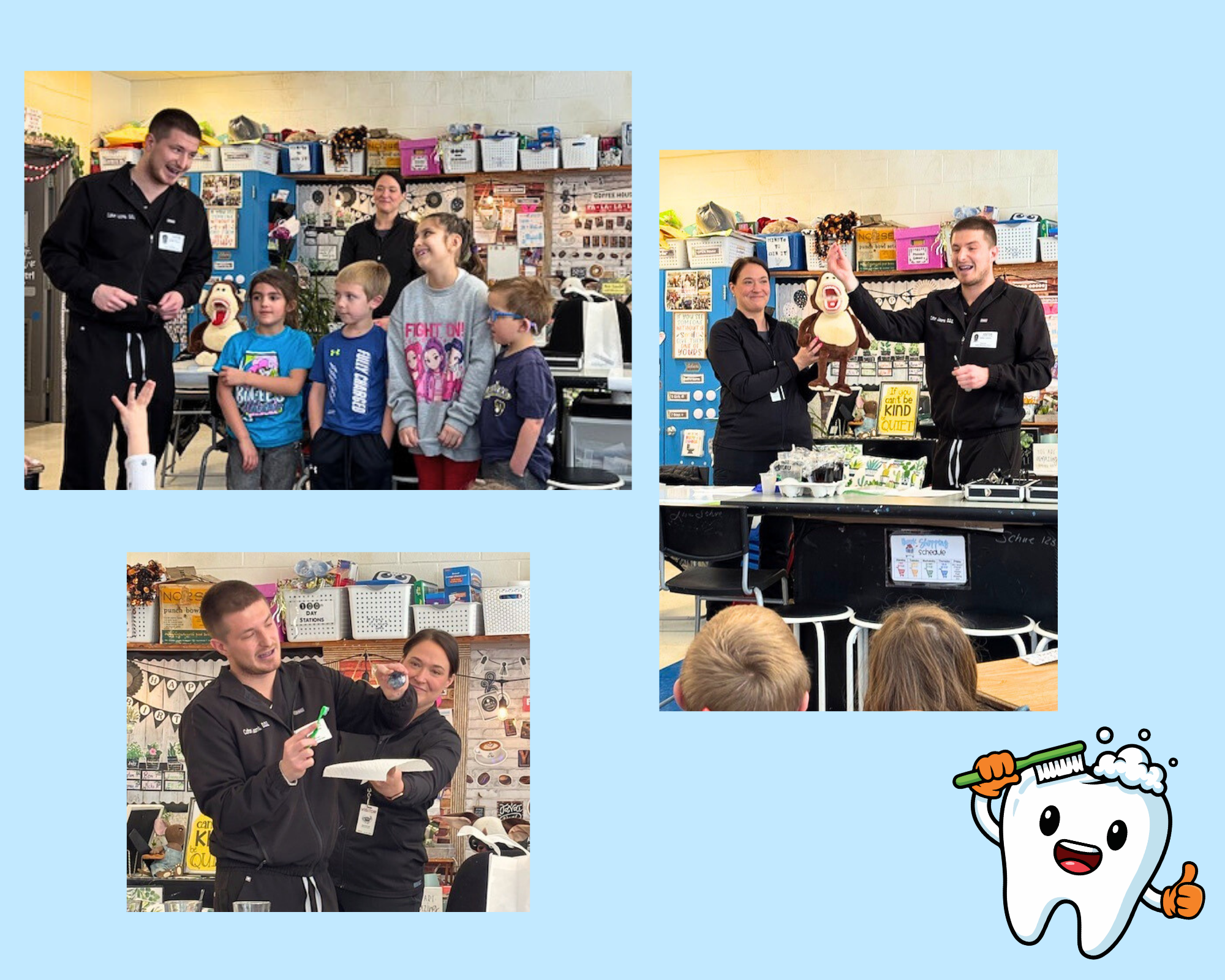 This past week, Burlington Dental Arts visited our first graders to teach them about oral hygiene. They answered the students' questions and led a fun experiment comparing healthy snacks to sugary ones. The kids had a fantastic time learning how to care for their smiles!