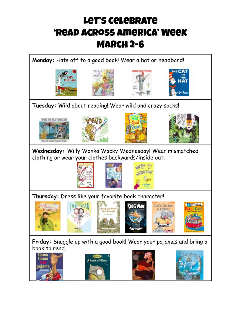 | The week of March 2nd is Read Across America which Waller will be celebrating. There will be fun dress up days and special events planned for the week. Take a look at the dress up days below and feel free to join in on the fun!