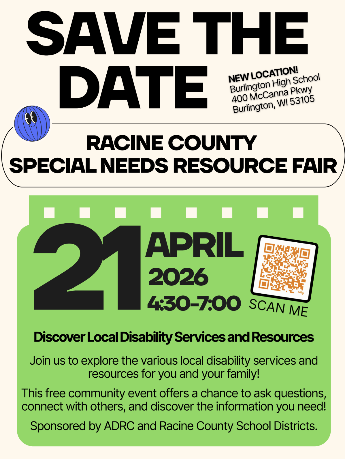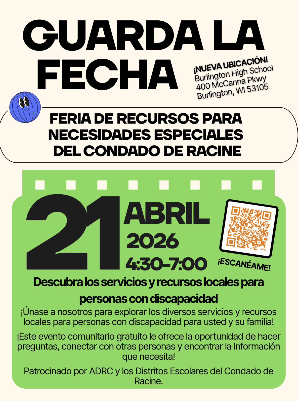 Feria de Recursos para Necesidades Especiales Nueva ubicación: Escuela Secundaria Burlington, 400 McCanna Parkway, Burlington Fecha: 21 de abril de 2026 Hora: 16:30 - 19:00 h