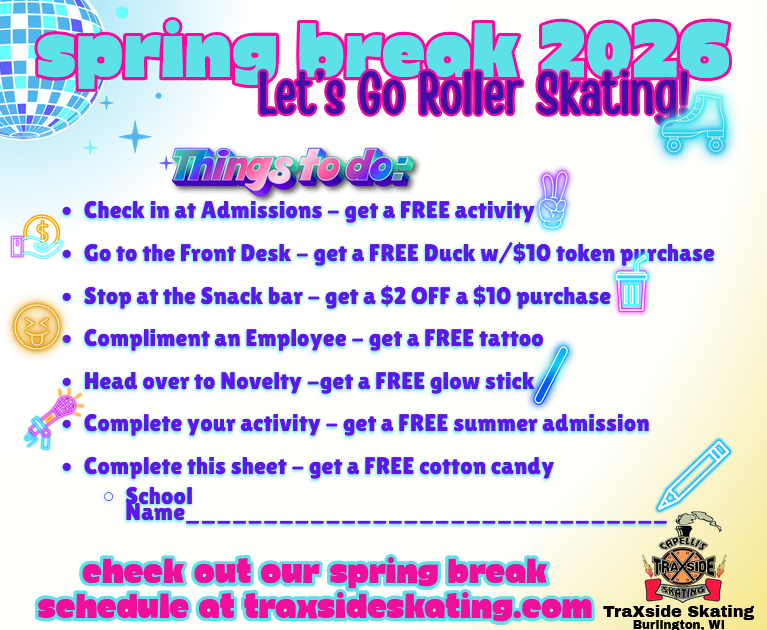 Traxside Skating has some exciting events planned throughout the month of March! They’ll also be hosting fun activities during spring break, making it a great time to get out and enjoy some skating.