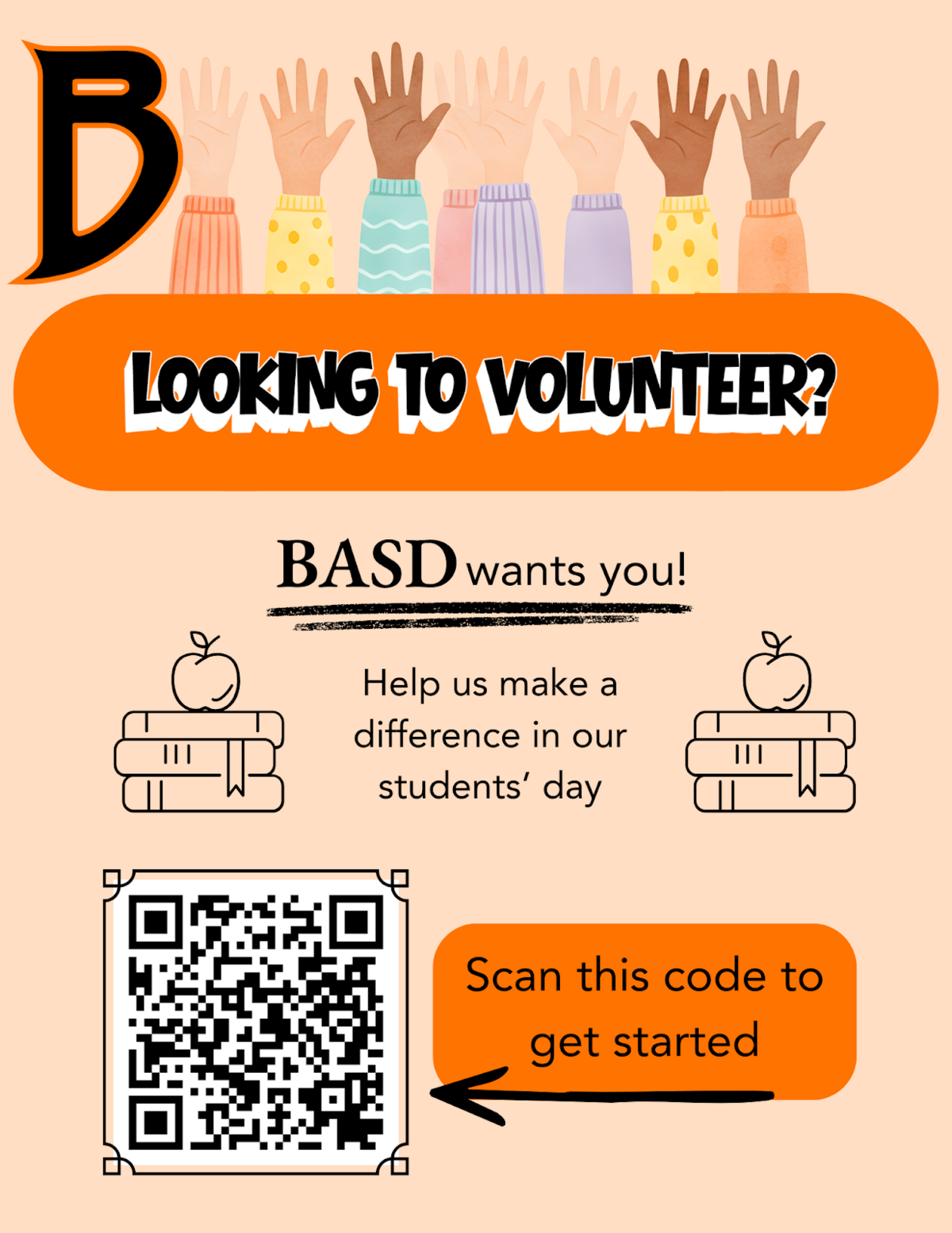If you’re thinking about volunteering/chaperoning soon, simply scan the QR code to complete an application. Be sure to include in your application which schools and opportunities you’re most interested in.